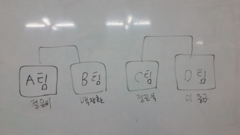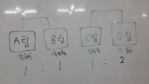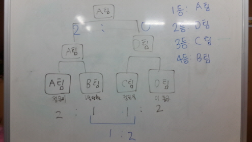 어느새 결정된 팀도 있고 박빙의 승부를 이어가는 팀도 있습니다~~ 과연 결승에는 어느팀이 오르게 될까요?? A팀과 D팀이 결승에 올랐어요~~