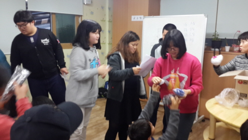 이제 모든상품을 받았으니 자신의 선물을 고르는 시간~~!! 먼저 종이를 뽑은 다음