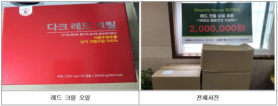 비타민하우스 대구지사에서 어르신의 혈관건강을 위한 레드크릴 오일을 지원해 주셨습니다.